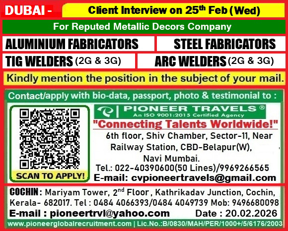 Client interviews will be conducted in Kochi at the Little Flower Engineering Institute, located at NH 47, Metro Pillar No. 298, Cusat Junction, South Kalamassery. Career Craft International is an established recruitment agency approved by the Ministry of External Affairs, Government of India, ensuring a safe and completely reliable hiring process.