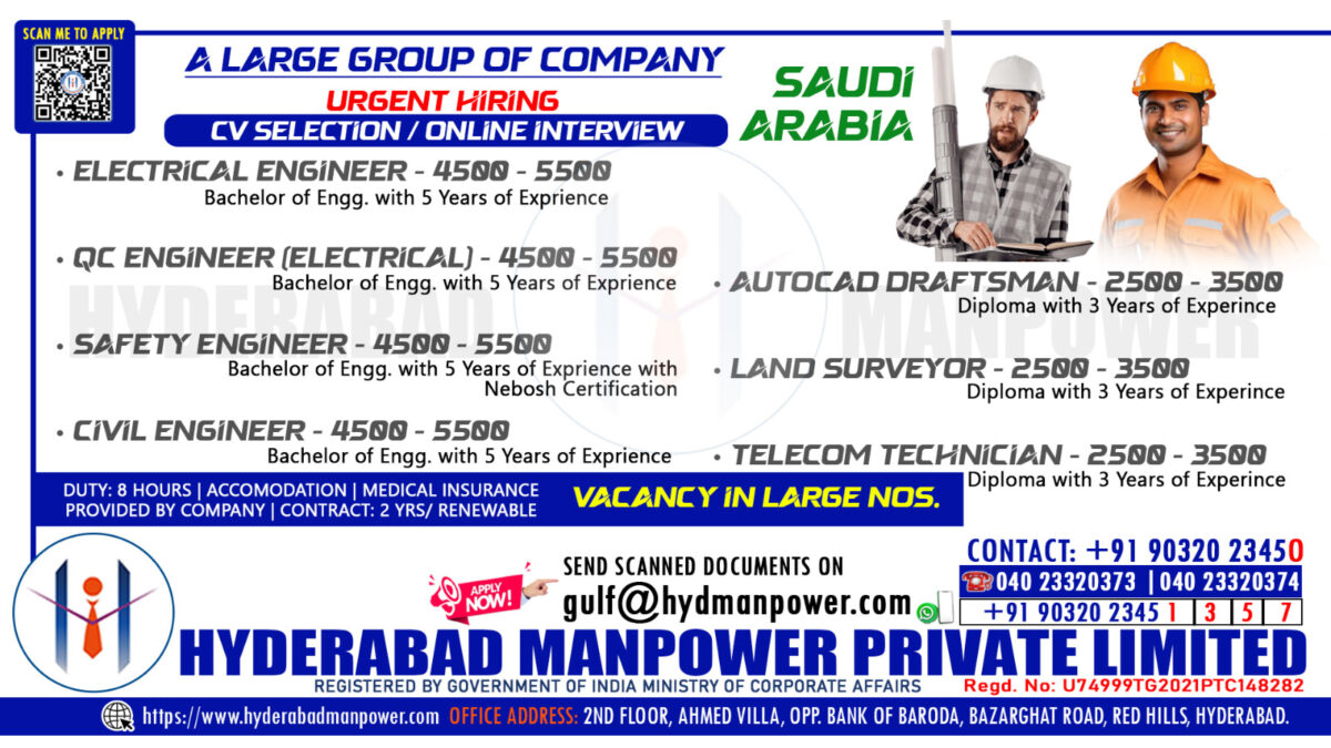 Urgent Hiring for A Large Group of Company in SAUDI ARABIA