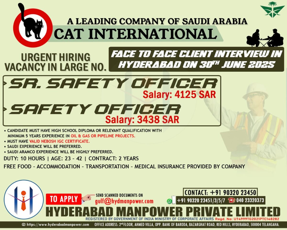 Urgent Hiring for A Leading CAT International Company for Saudi Arabia