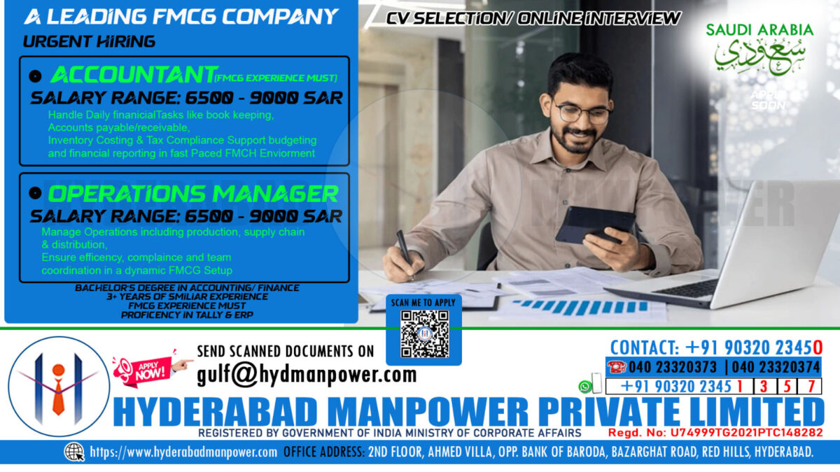 Urgent Hiring For A Leading FMCG Company in Saudi Arabia