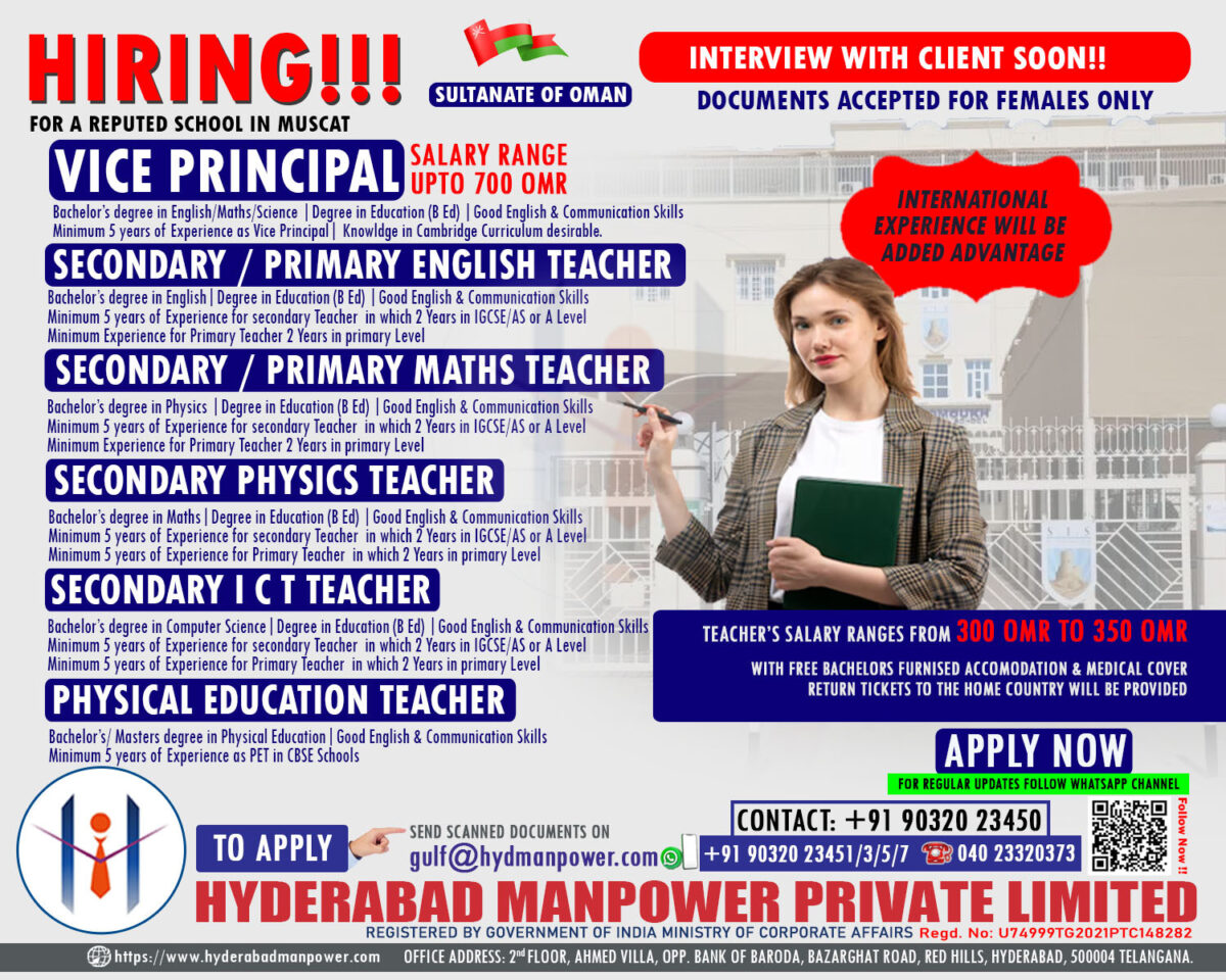 Urgent Hiring for A Reputed School in MUSCAT