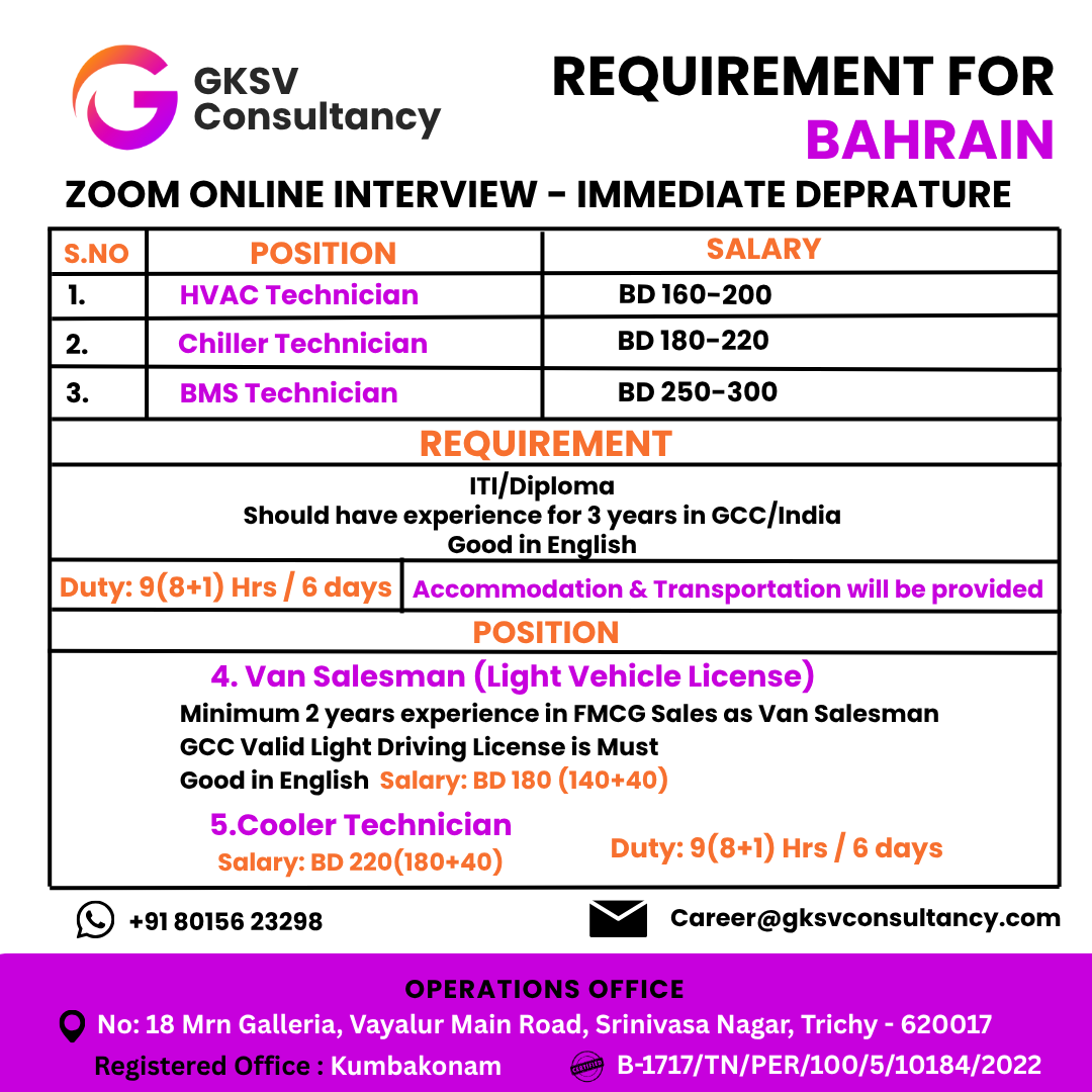 Urgent Hiring for Bahrain