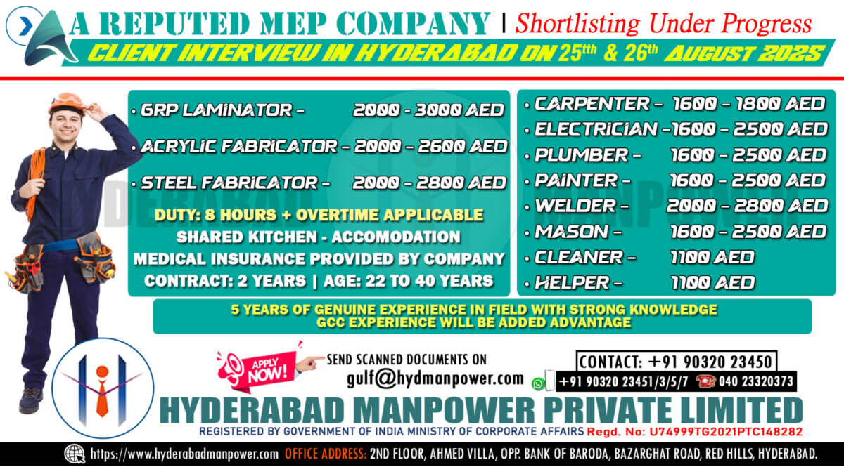Urgent Hiring for Client Inteview at Hyderabad on 25th and 26th Aur 2025