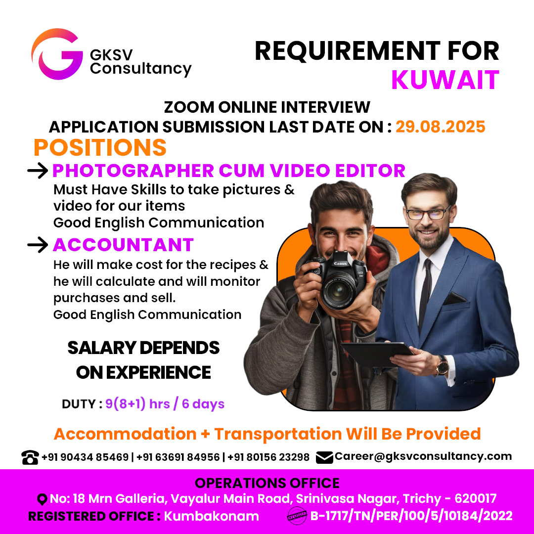 #photographer #PhotographerJob #picturesandvideo #videoeditor #videoeditors #videoeditorjobs #accountant #accountantjobs #monitorpurchases #purchases #sell #kuwait #KuwaitJobs #KuwaitJobs2025 #kuwaitjobdaily #kuwaitjobsearch #kuwaitjobsoffers #kuwaitjobseekers