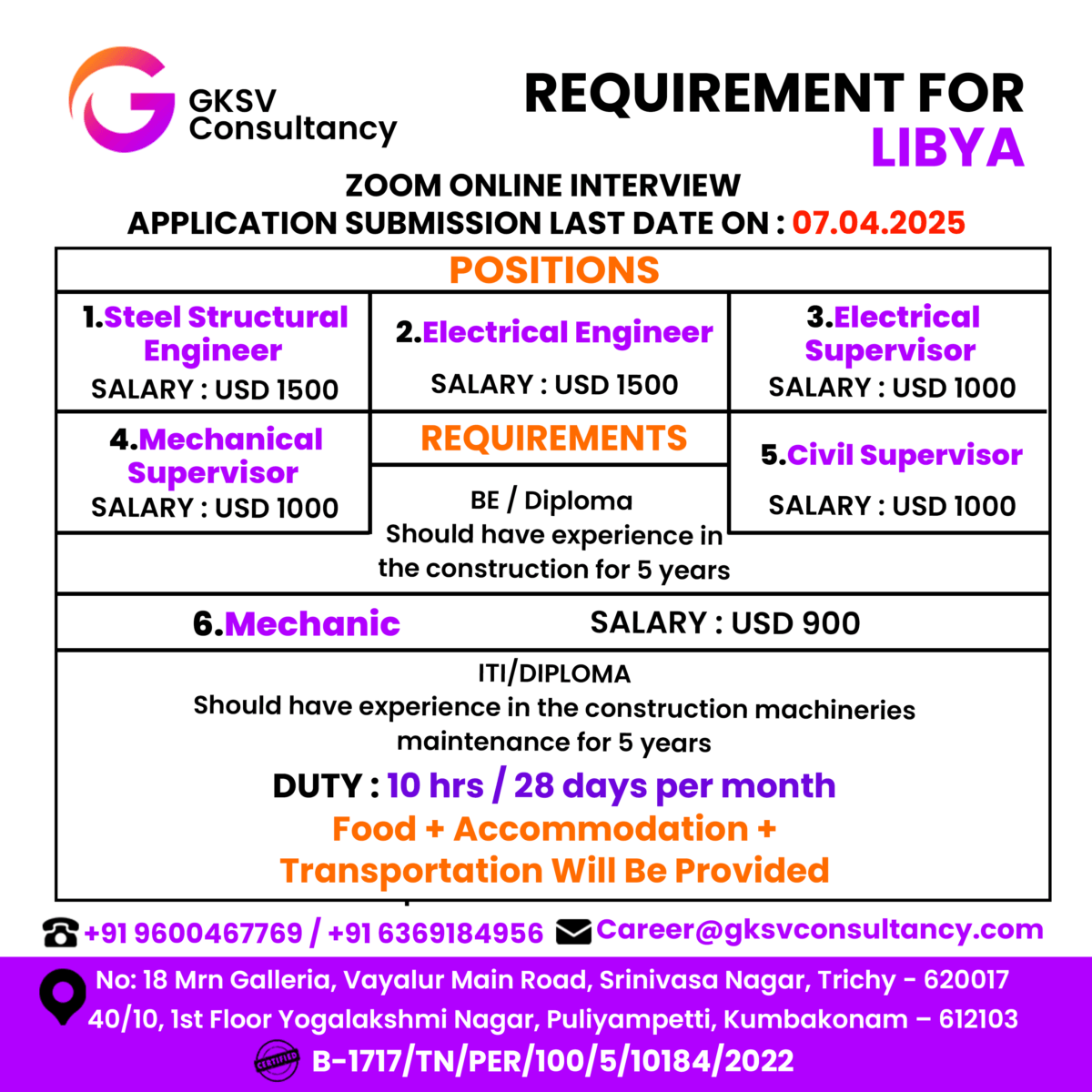 Urgent Hiring for LIBYA