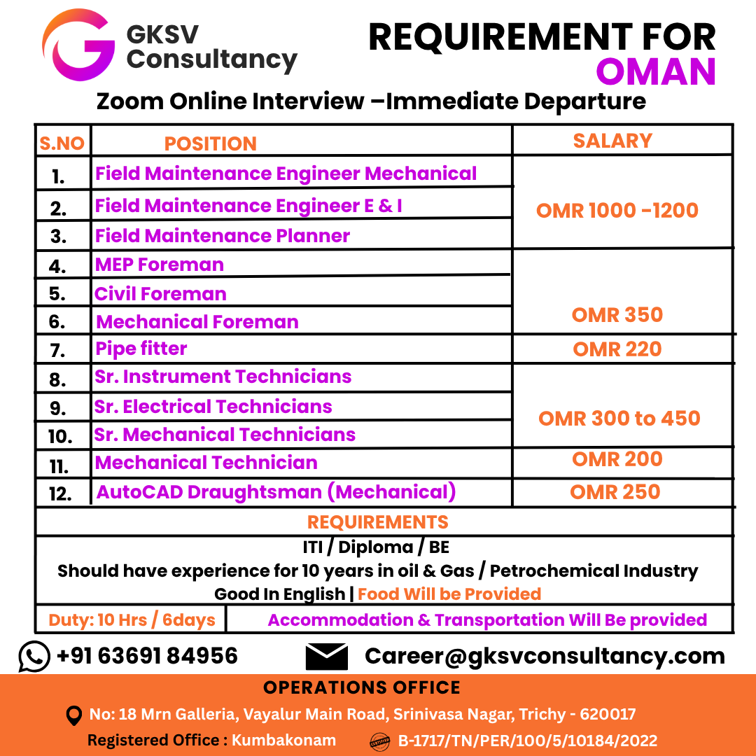 Should have experience for 10 years in oil & Gas / Petrochemical Industry