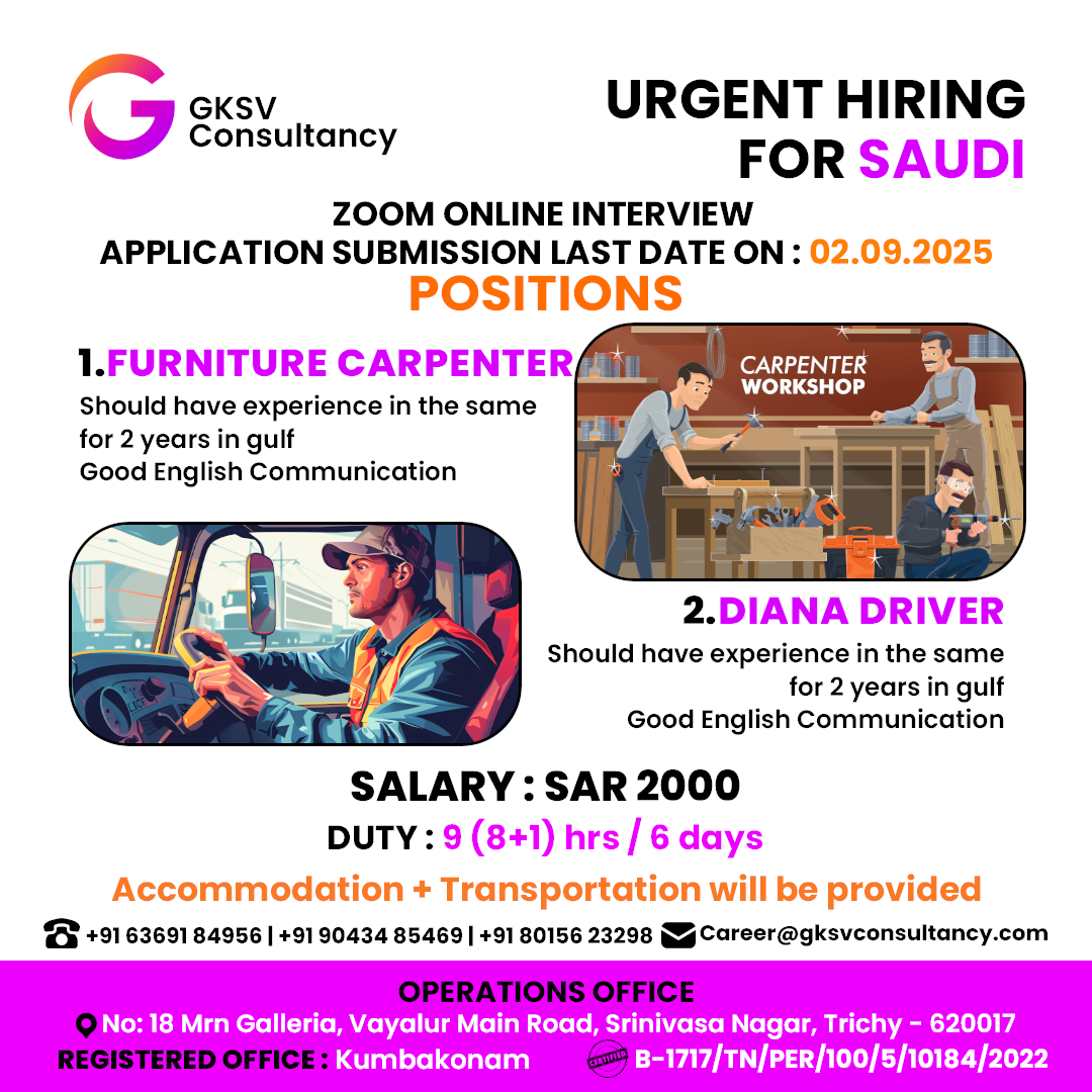 #Furniturecarpenter #furniturecarpenterjob #GulfExperience #dianadriver #driver #driverjobs #saudimediumlicense #mediumlicense #SaudiJob #saudijobs #SaudiJobVisa #SaudiJobMarket #saudijobseeker #saudijobvacancy