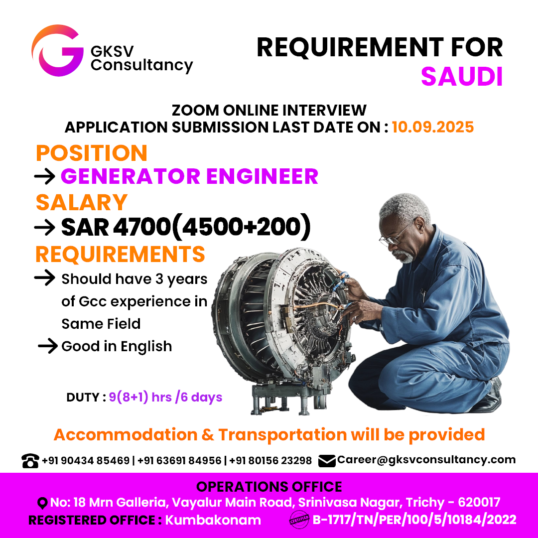 #generatorengineer #generator #BEmechanical #beelectric #gccexperince #saudi #saudiarabia #saudijob #SaudiJobs #SaudiJobMarket #saudijobvacancy #saudijobseekers #saudijobseeker #saudijobs2025 #saudijobseeker