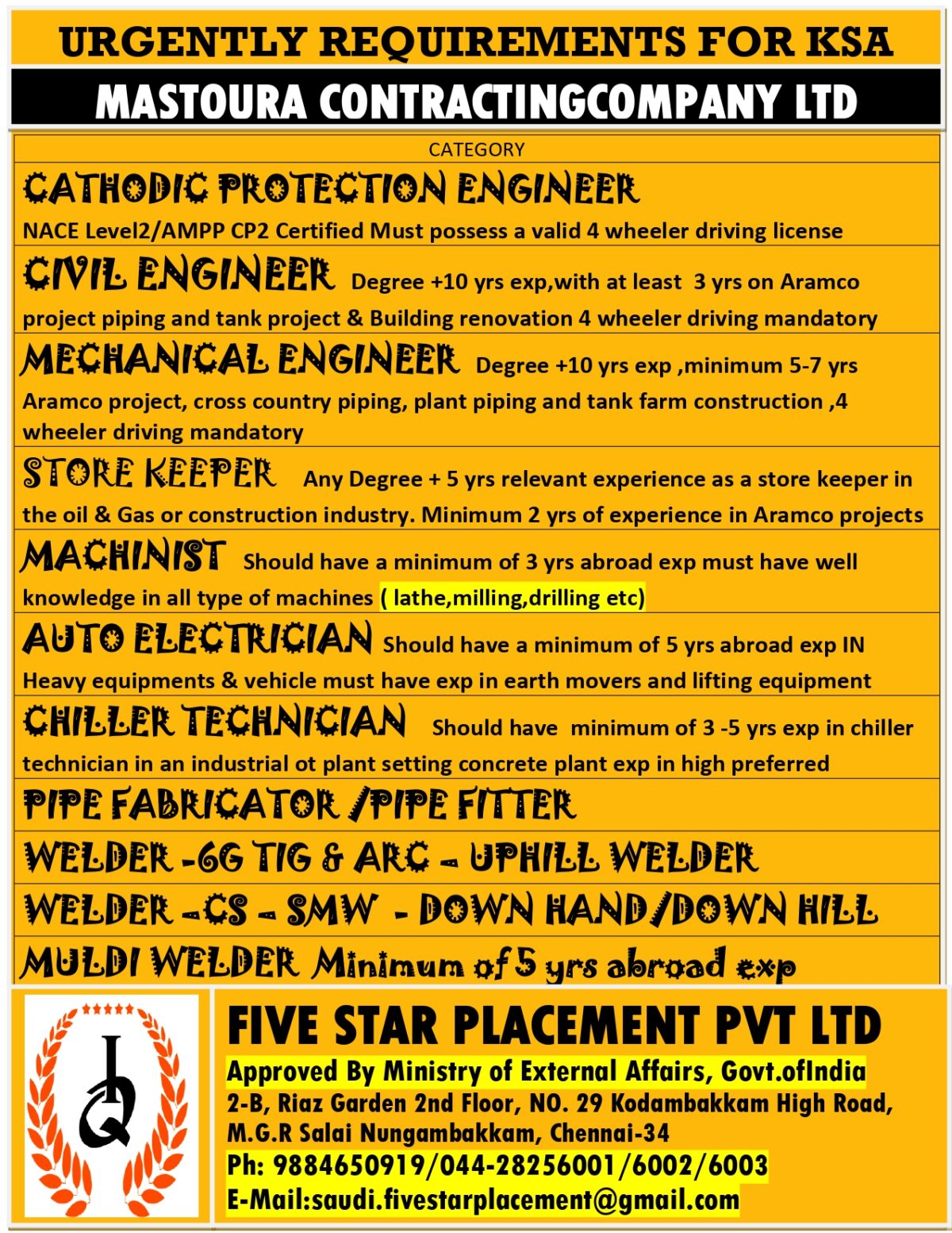 URGENT JOB OPENING FOR SAUDI ARABIA