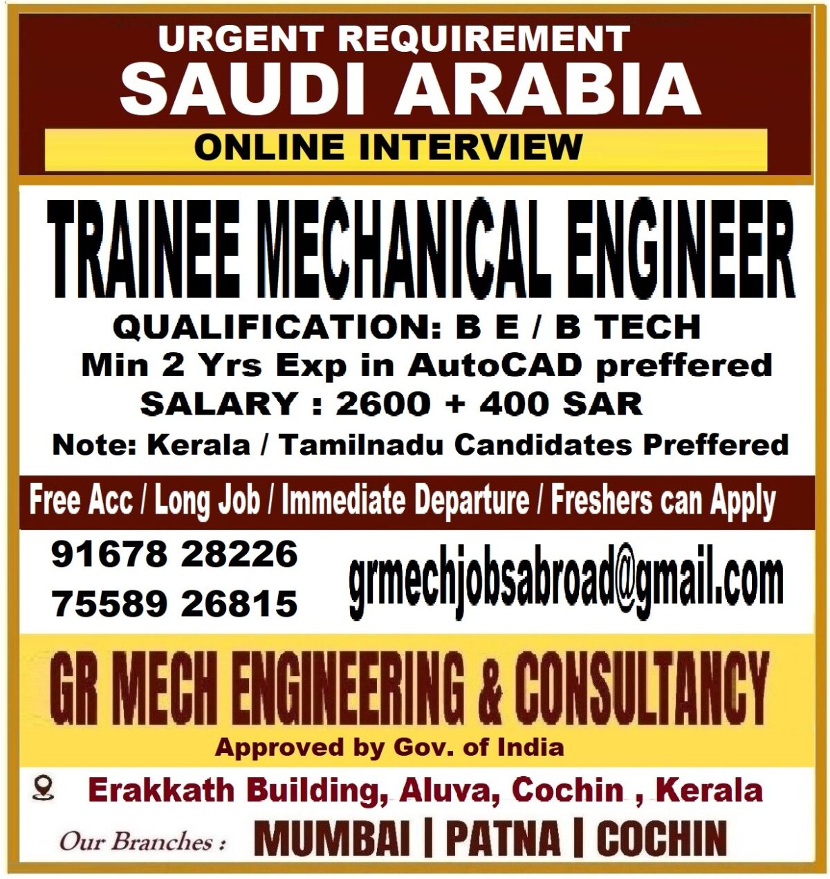 SAUDI ARABIA — URGENT HIRING 🔧 Heavy Engineering / Shipbuilding Company 📍 Direct Client Interview — 29 March | Chennai See Job Detail & Apply March 26, 2026 No Comments
