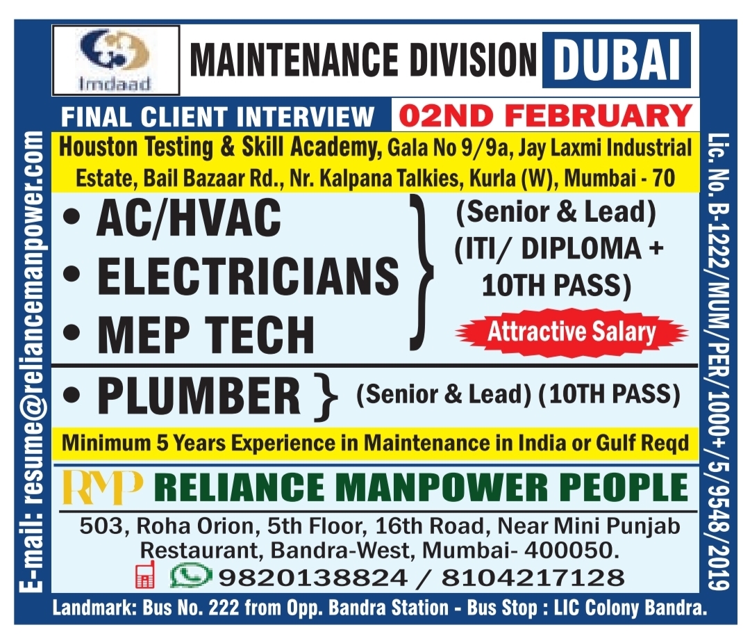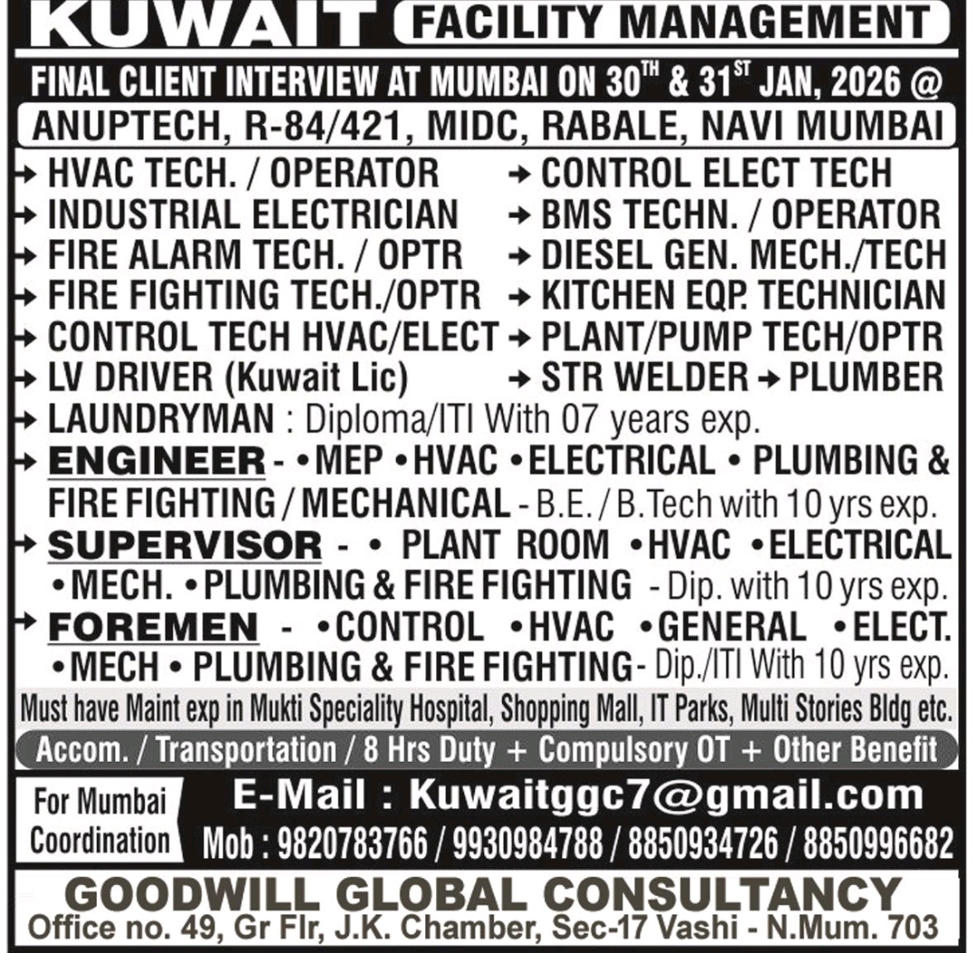 G K Manpower Consultants (Reg. No: B-0004/MUM/PER/1000+/5/7650/2006) is managing this recruitment.