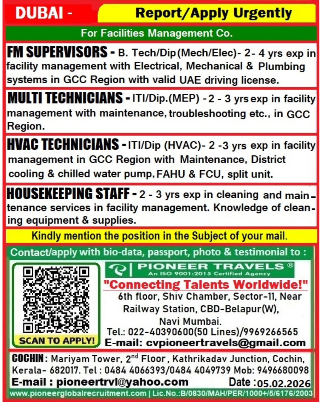 Interested candidates can send their updated CV, passport copy, photo, and experience certificates to the provided email address.