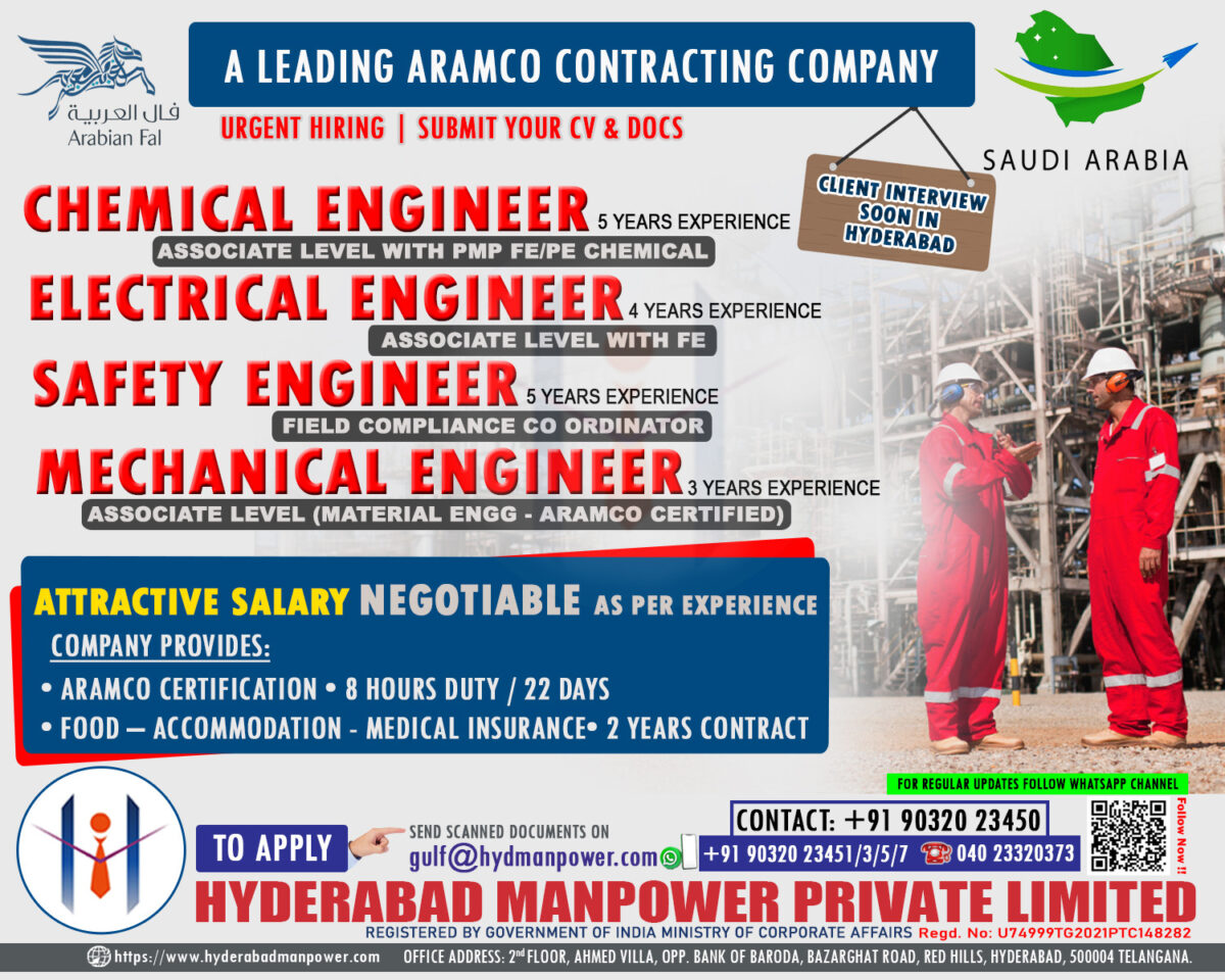 Urgnet Hiring for A Leading Aramco Contracting Company of Saudi Arabia