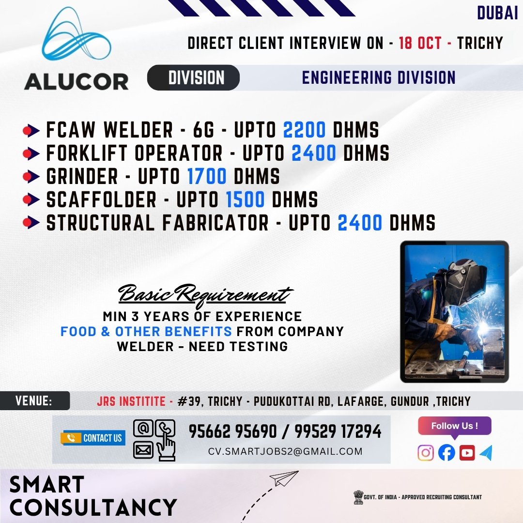 WANTED FOR A LEADING ENGINEERING COMPANY (DUBAI) – DIRECT CLIENT INTERVIEW ON 18 OCTOBER – TRICHY